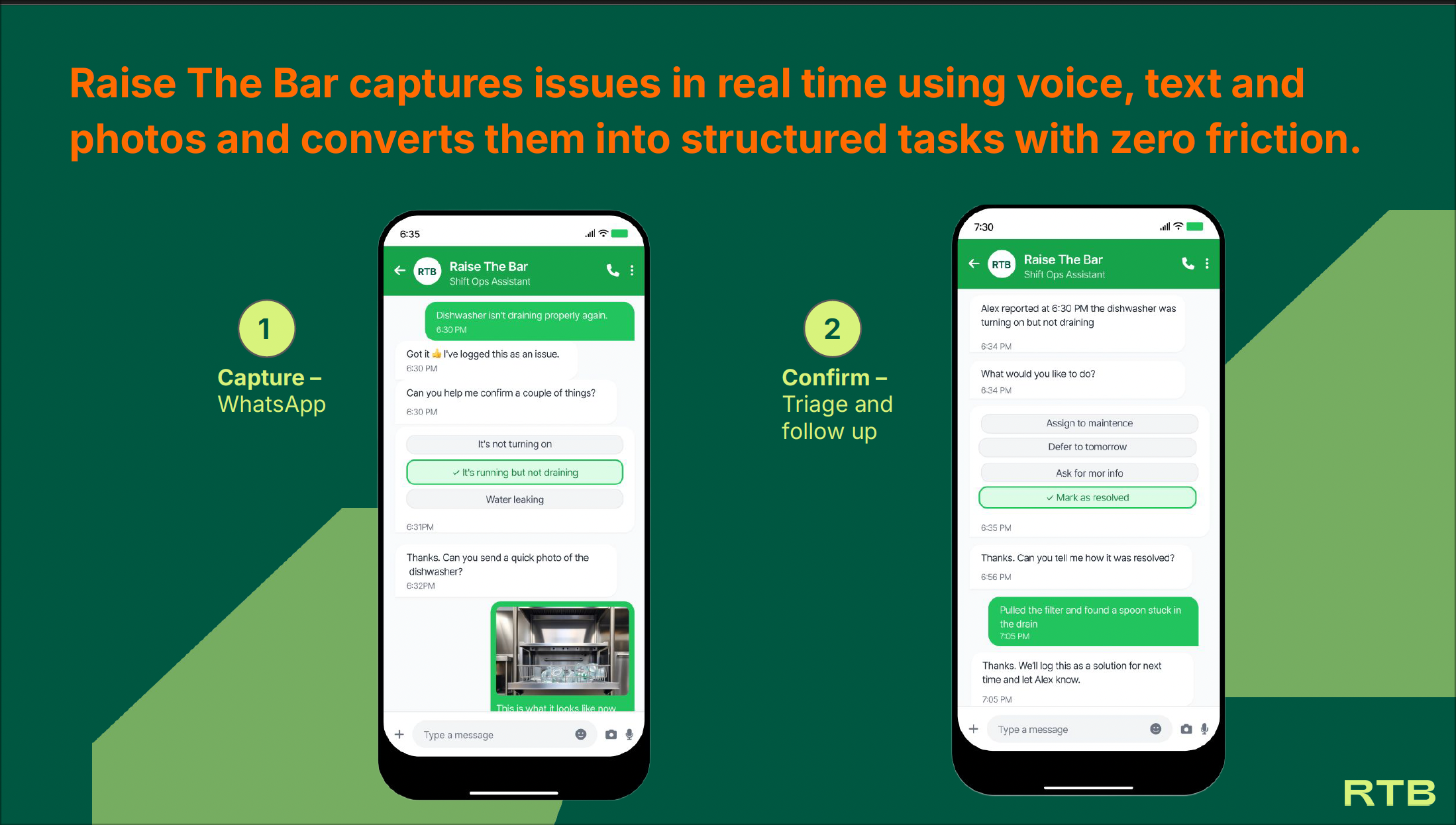 Raise The Bar captures these operational signals in real time using tools teams already use, such as voice, text, photos, and messaging.